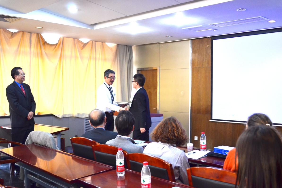 在青年学生交流活动第二分会场,两校高年级学生就“人工智能”(Artificial Intelligence)这一话题展开了小组探讨。在交流探讨中,两校学生就人工智能的发展现状,存在问题,以及未来发展趋势等问题进行了深入探讨并交换看法。双方学生均表示,小组探讨使得双方学生更深入的交换了思维和看法,收获颇丰。此外,日本东北大学工学部副教授好田为现场师生展示了未来集成电路和存储器的自旋电子学。独特的思路和清晰的讲解吸引了现场师生的热切讨论,现场气氛活跃,促进了两校青年学者的相互借鉴和学习。活动最后,长坂也教授为获得本次交流活动优秀奖的两校学生颁奖。