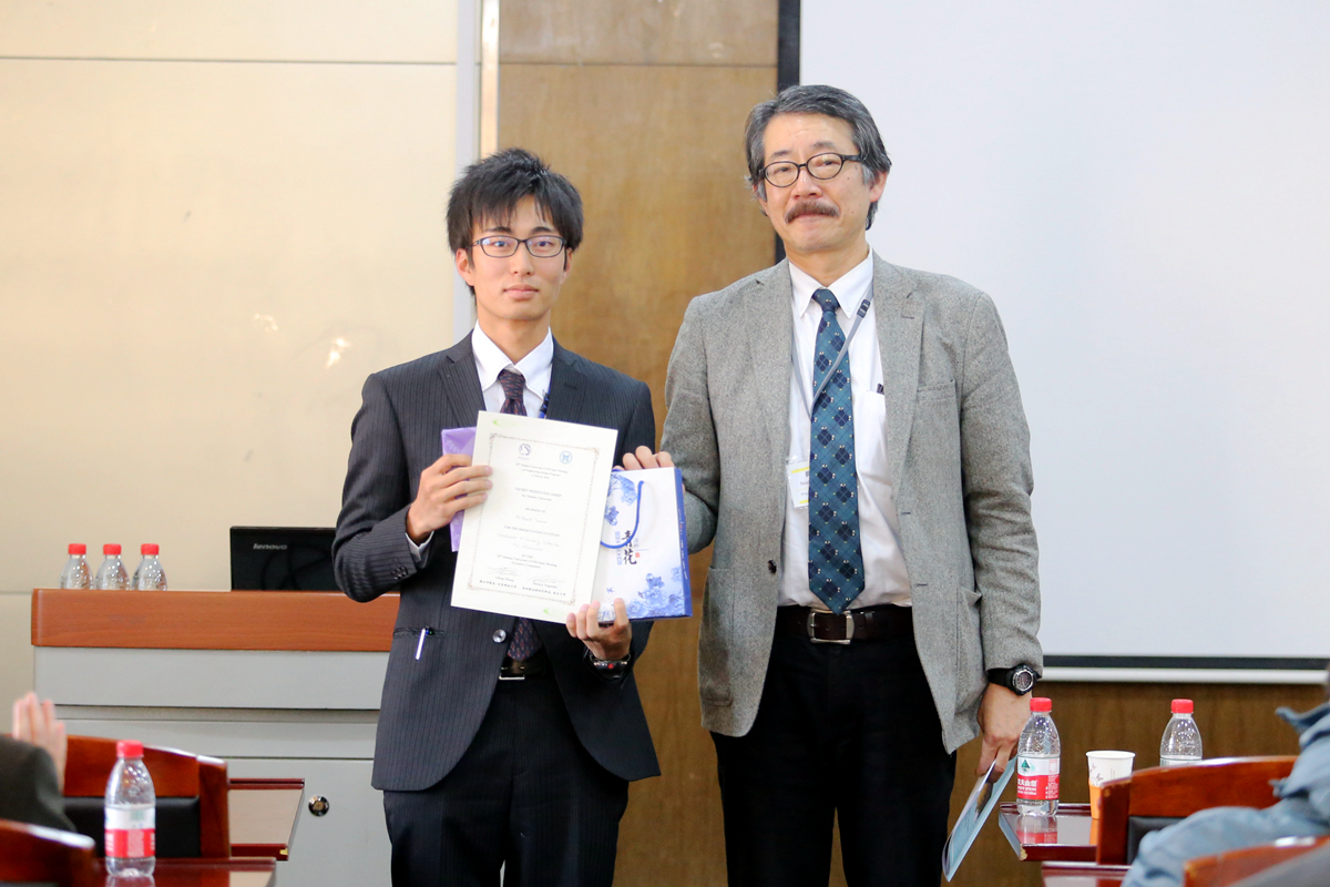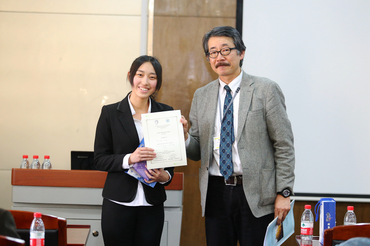 开幕式结束后,两校青年学生开展交流活动。在第一分会场,28名两校学生代表在长坂也教授的主持下依次上台,向在场同学们汇报了研究学习中的收获心得。日本东北大学工学部副教授伊丽莎白,age动漫 副院长李宏煦、陈骏,青年教师杨文等参加学生研习交流活动并进行指导。日方学生渡边千宽引导在场的同学们走进五彩斑斓的金属薄膜色彩世界,西村肇伦介绍了利用花瓣色素制成太阳能电池的原理,山田加奈子展示了用电化学方法在钛金属表面绘画的全过程,日方学生的创意和思路赢得中方师生的赞赏。我校学生张亚菲运用电镜图片介绍了非金属夹杂物对钢铁疲劳性能的影响,李瑶介绍了对高铝低密度钢组织和性能的研习情况,黄心眉以科学视角介绍了中国农村的环境污染现状,中方学生的踏实和细致赢得了日方师生的肯定。在交流活动中,同学们认真聆听,踊跃提问,相互学习,取长补短。长坂也教授为获得本次交流活动优秀奖的两校学生颁奖。