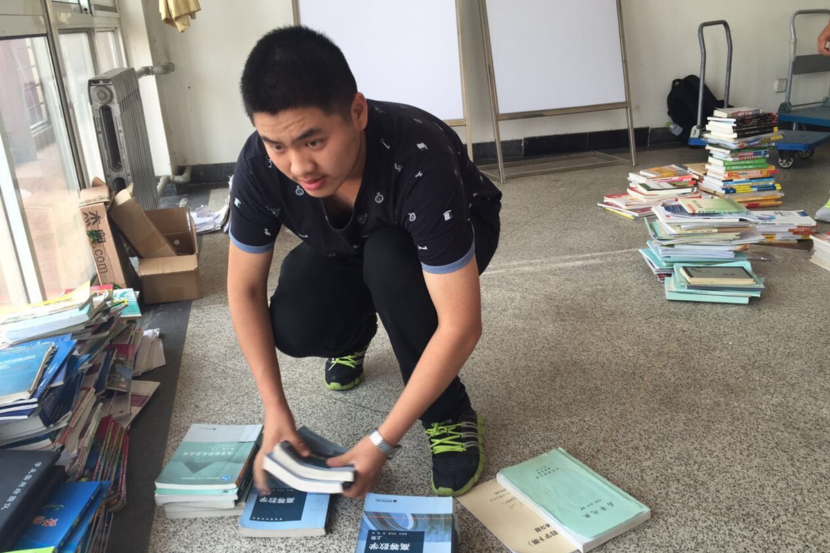 书香传递活动目前进行了收集书籍和整理书籍两个阶段。为收集整理图书,协会共招募了15名志愿者。5月16晚志愿者们逐一进入师兄师姐们的宿舍进行收书。学长学姐们十分热情,纷纷拿出整理好的陪伴他们度过大学四年时光的书籍,许多同学表示这些书也是由之前的同学传承下来的,还有的同学在书的扉页写下对学弟学妹的祝福与期盼。