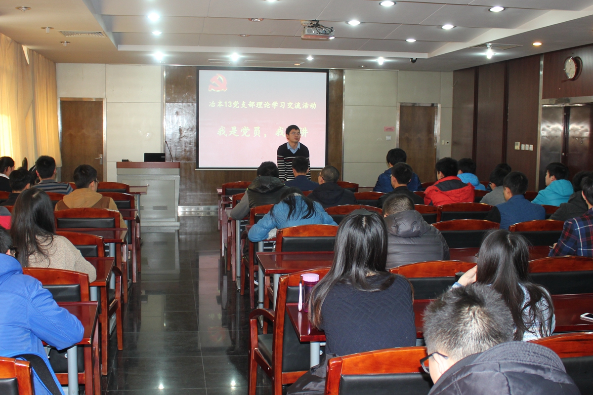 冶本2013级党支部党于11月29日在冶金楼青钢报告厅举行 “我是党员我来讲”理论学习活动。支部党员和积极分子60余人参加了学习活动,辅导员郝勇飞老师进行现场指导。