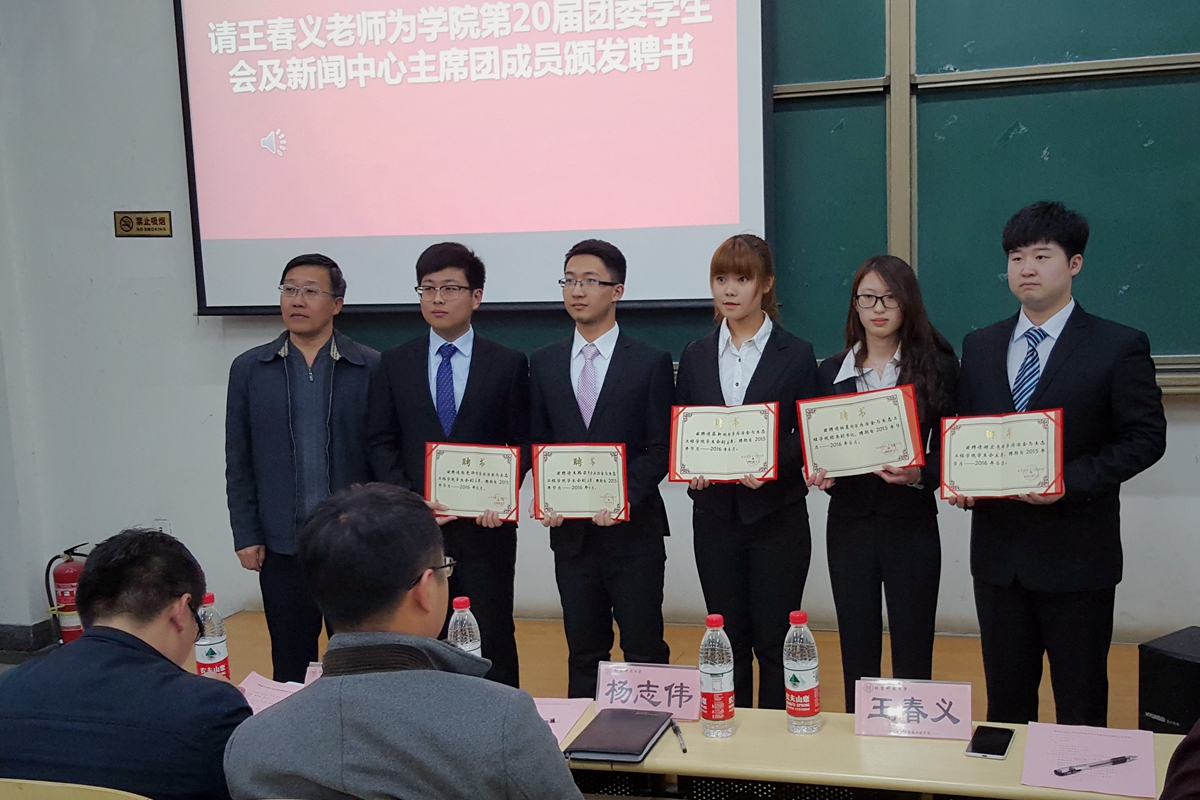 团委书记杨志伟老师,辅导员陈曦老师、郝勇飞老师参加聘任大会并向学院团委学生会及age动漫部长骨干颁发聘书。