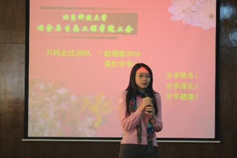 2010年1月21日上午10点,在冶金楼616,学院工会举办了以“新年新气象,我们共同分享”为主题的新年联欢会,联欢会分为四个部分: