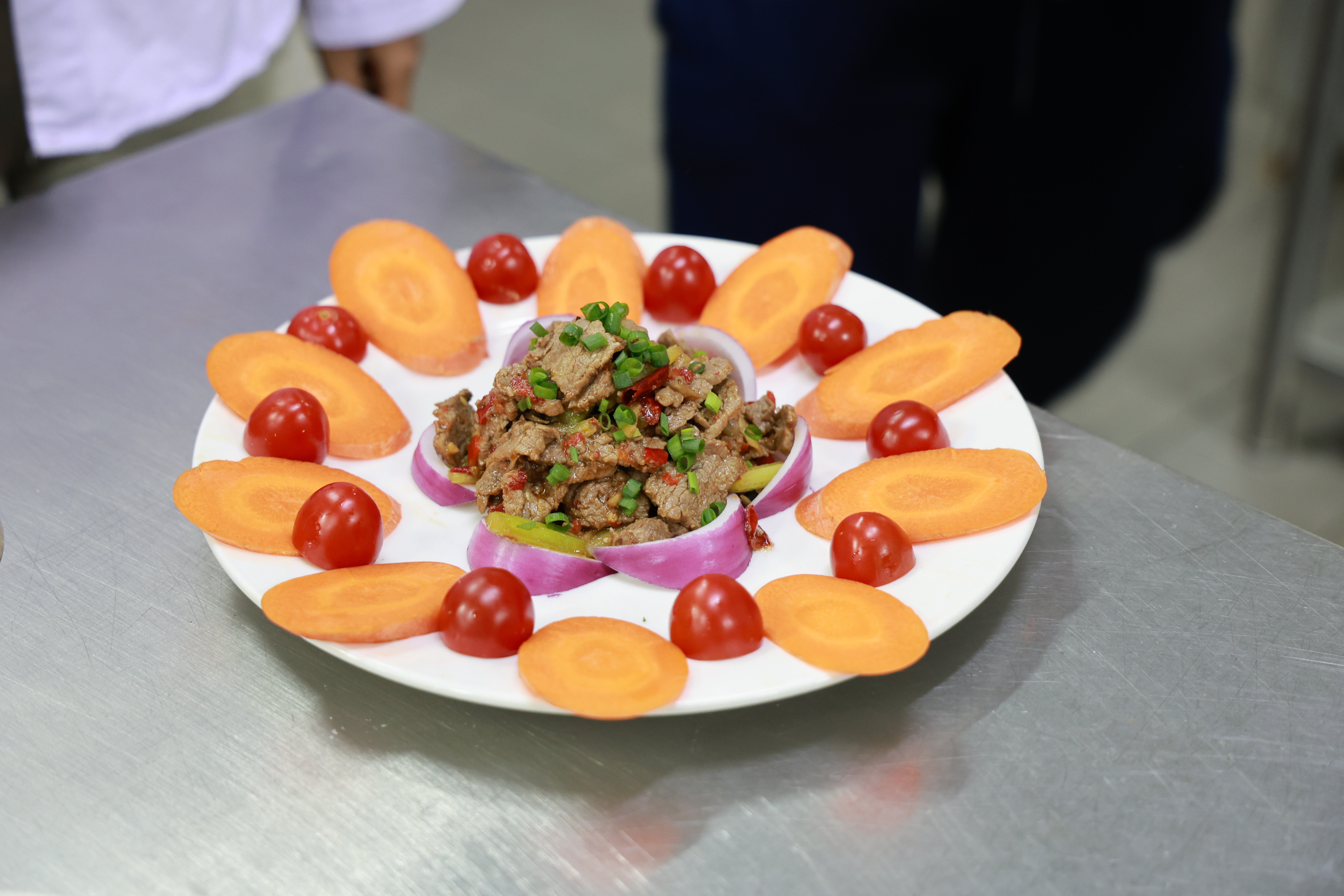 大家严格遵循少油、少盐、少糖原则,刀工利落、火候精准、搭配科学。一道道兼具营养与颜值的菜品新鲜出炉,绿色健康理念融入每一道佳肴。