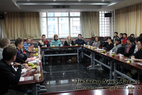 本社讯 2010年10月19日下午,德国亚琛工业大学的十几位学生来到冶金与生态学院,在冶金楼616和我院大三大四的部分学生进行了交流活动。院党委副书记王春义老师、10级辅导员李萌出席了本次活动。