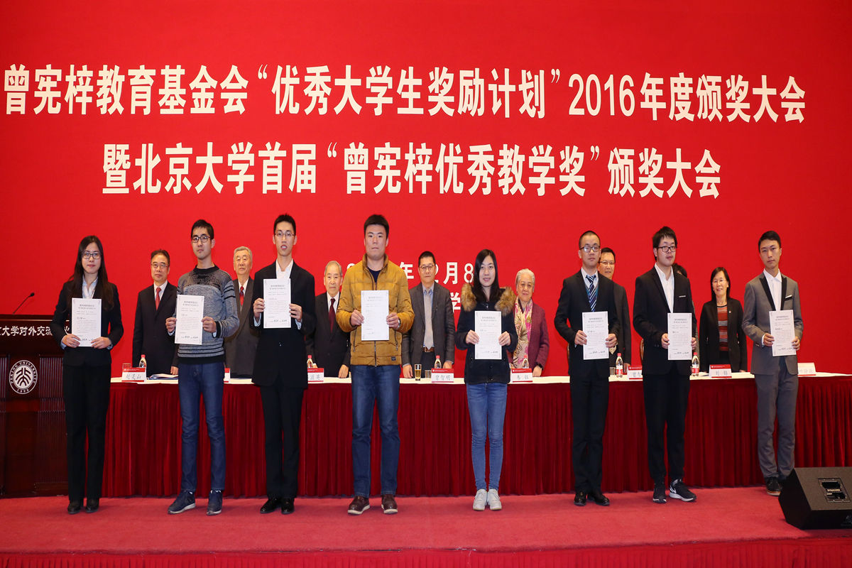 会上,教育部港澳台办主任刘锦在致辞中介绍了曾宪梓教育基金的设立过程、所取得的成效。北京大学党委副书记叶静漪回顾了曾宪梓先生的创业经历和他所坚守的慈善事业,并勉励获奖师生珍惜荣誉、奋发有为,以更优异的成果回报社会的支持。教育部原部长、曾宪梓教育基金会副理事长韦钰宣读获奖师生名单,各位嘉宾共同为获奖师生代表颁发证书,我校材料科学与工程学院学生邓馨作为获奖学生代表领奖。