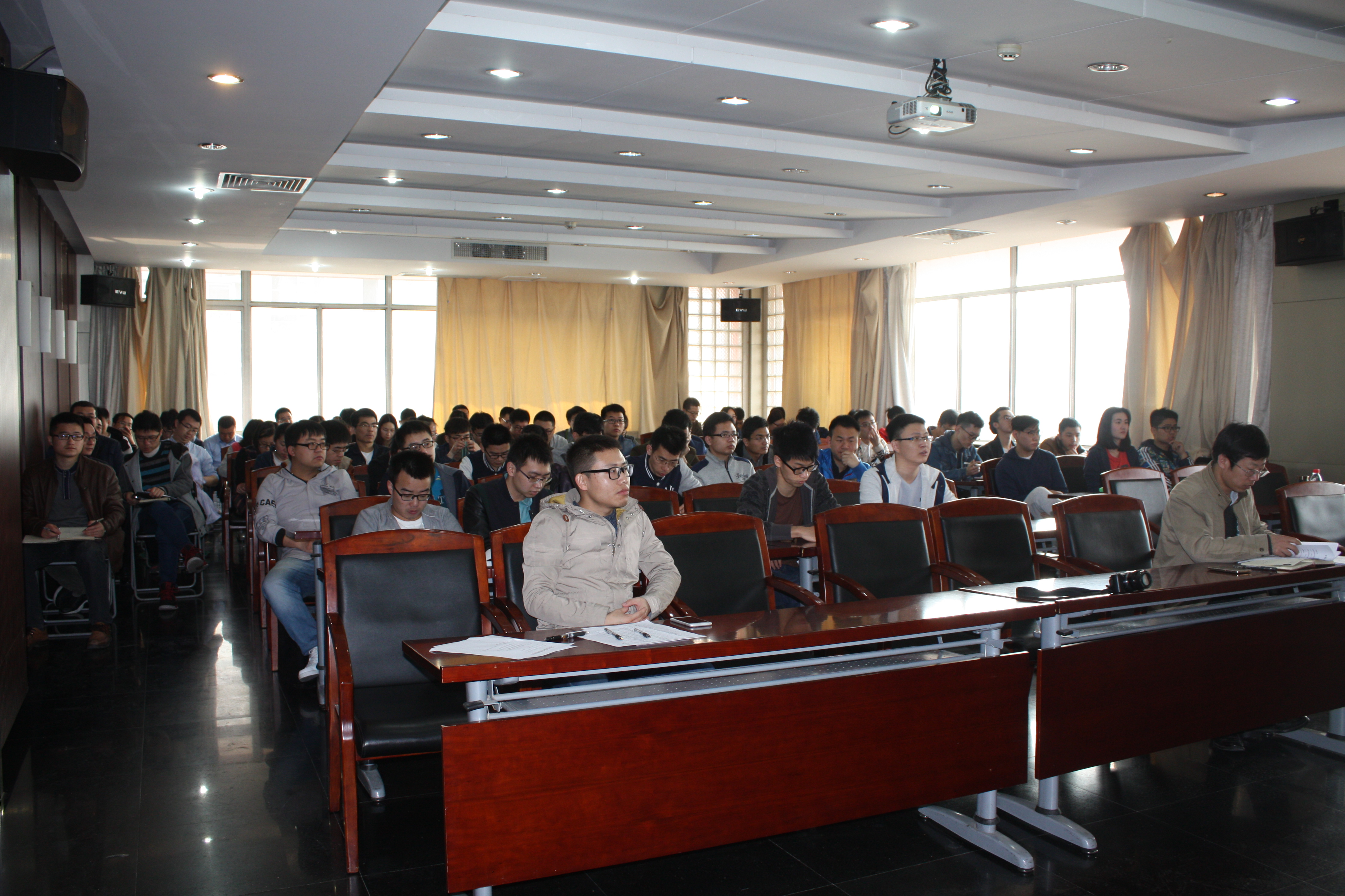 研究生二年级以上的学生进行一年一度的安全培训。会议室座无虚席,共计112名学生参加了培训。