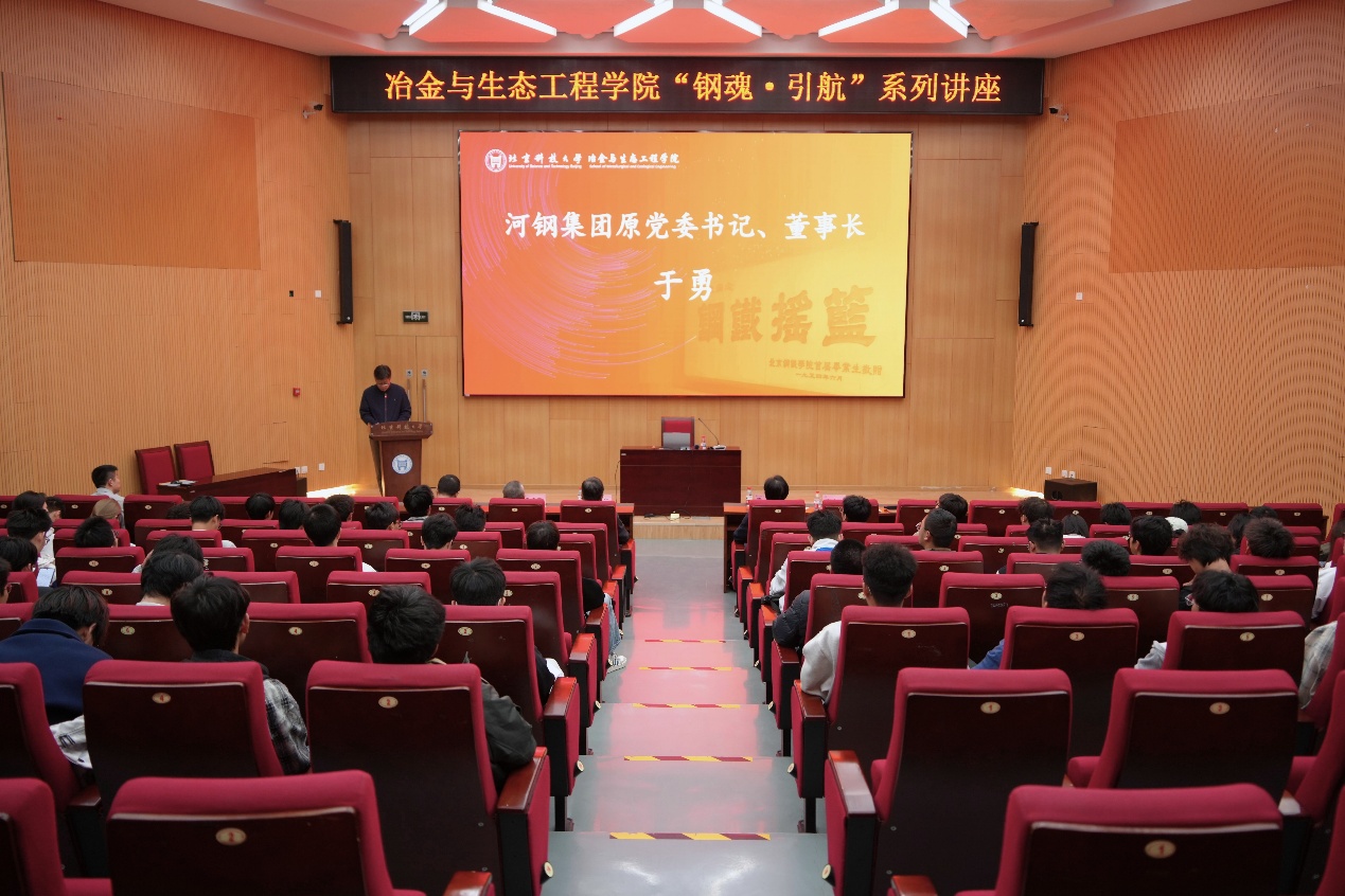 4月8日,age动漫 “钢魂·引航”系列讲座第一讲在学术报告厅顺利举行,学院邀请到河钢集团原党委书记、董事长于勇作交流报告,中国钢铁工业协会副会长、中国国际贸易促进委员会冶金行业分会会长(兼)李毅仁、age动漫 院长助理(挂职)、辽宁科技学院发展规划与学科建设办公室副主任李晓亮、age动漫 党委副书记、副院长康泰及100余名冶金工程专业新生参与。讲座由age动漫 党委书记宁晓钧主持。