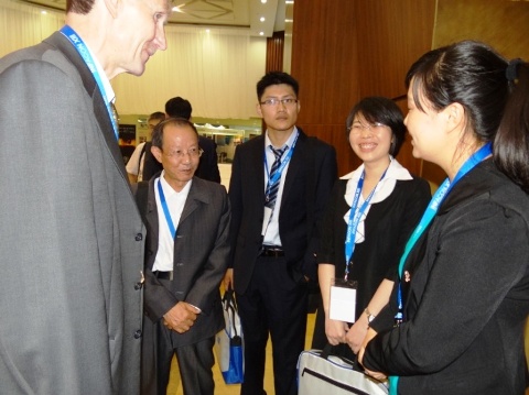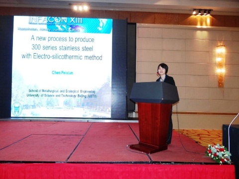 我院储少军教授带领铁合金与电热冶金梯队其他四名师生参加了会议,并有四篇学术论文在会议上发表。其中博士生陈佩仙和胡冬应邀在大会上分别作了题为“电硅热法生产300系列不锈钢的新工艺”和“矿热炉冷凝炉衬侵蚀边界的快速计算模型”的报告,王海娟老师和博士生倪善强做的POSTER主题分别为“带式烧结机烧结铬粉矿的新工艺”和“摇包内混合时间的研究”。许多参会者对我院的研究内容表现出浓厚的兴趣,尤其是陈佩仙同学论文中提出的用电硅热法冶炼300系不锈钢的新工艺,在会上引起了很大反响。该项目已经获得国家自然科学基金资助(No.51274030),相关的研究工作正在进行当中。