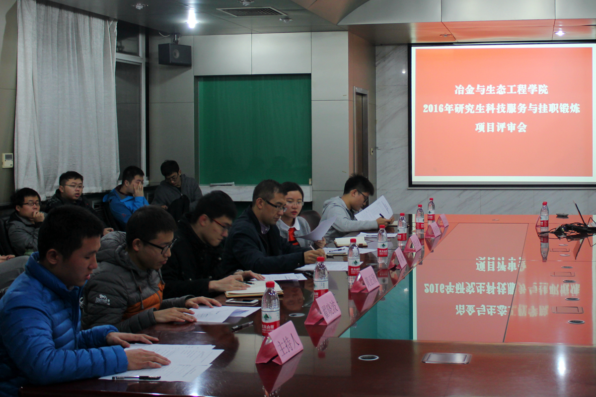 11月1日,age动漫 2016年研究生科技服务与挂职锻炼评审会在冶金生态楼举行,本年度立项团队依次进行项目总结汇报。age动漫 、冶金国重研究生辅导员陈曦、李元坤、侯雨阳、翟晓波、武文合、黄正欣担任评委。评审会由学院研究生会副主席陈威同学主持。硕士2016级研究生代表现场观摩了答辩环节。