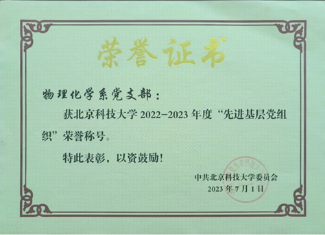 近日,中共北京市委教育工委发布通知,公布了北京高校党建工作“样板支部”培育创建单位名单,我院物理化学系党支部成功入选。