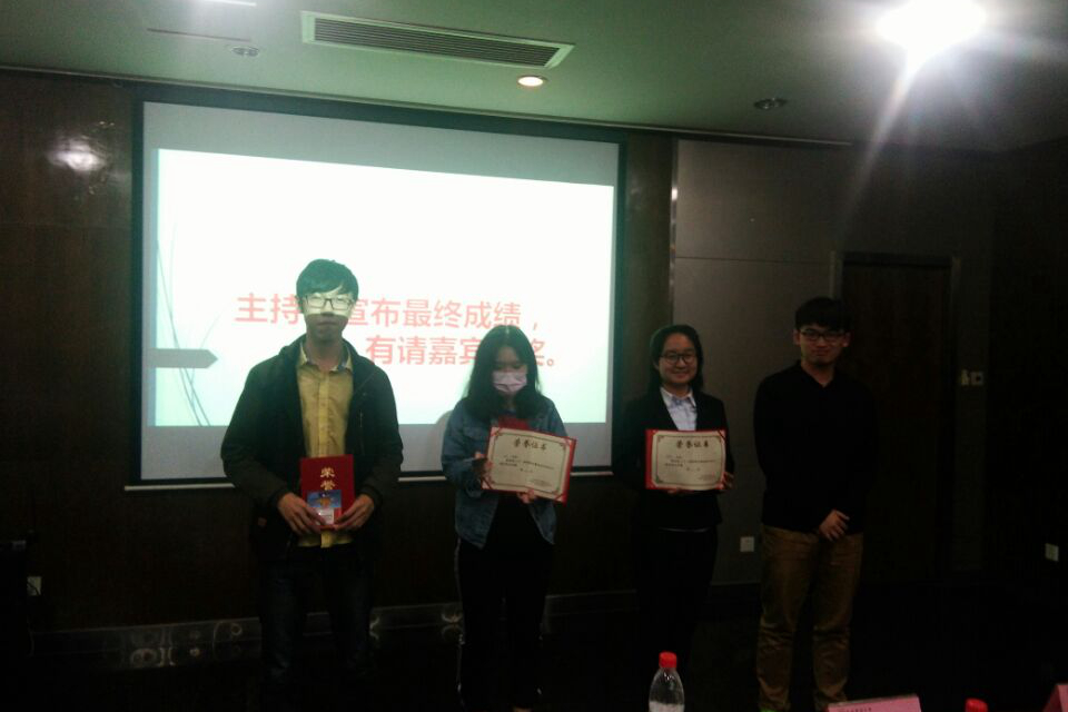 陈连万同学深情而具有磁性搬的声音赢得了阵阵掌声;郭胜同学从容不迫的表现得到了评委们的肯定;刘哲同学以她的热情洋溢的表现让观众们拍手称赞。上半场的比赛精彩万分,获得观众的一阵阵掌声。接下来张健博老师对上半场的选手进行了一一点评,马瑞同学对选手们进行了总评。