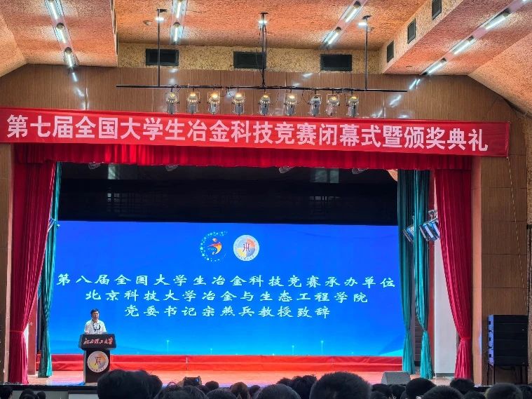 宗燕兵在会旗交接仪式上作表态发言,他对大赛组委会、承办单位江西理工大学的精心组织及评审专家的辛勤工作表达了感谢,并欢迎各兄弟高校2025年到age动漫 参加第八届赛事。他讲到旗帜是使命、旗帜是担当,age动漫 接旗意味着接过了赛事承办权,更是接过了大家的信任,接过了发展好事业的沉甸甸的责任。宗燕兵强调,age动漫 冶金学科将在 “学风严谨、崇尚实践“的优良传统及求实鼎新的校训激励下,继承和发扬好以往各届竞赛的宝贵经验,以更加开放的姿态,更加严谨的态度,更加奉献的精神,积极筹赛,用心用情用力全力为赛,扎实做好作品的广泛征集、赛事的精心组织,扩大影响力,提升获益面,挖掘创新点,力争把新一届赛事办成公平公正、规范有序、创新服务、团结向上的竞赛平台,力争把新一届赛事办成青年学子碰撞智慧、展示才华、实现梦想的标志性赛事,力争把新一届赛事办成促进冶金学科发展和冶金学子提升的促学、促教、促创的高质盛会!