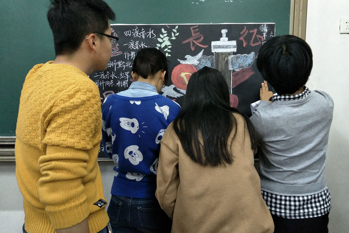 10月23日上午,为集中开展长征精神学习教育,引导学生思考长征精神的深刻内涵,思考当代需要怎样的“长征精神”,age动漫 于冶金楼110举行“激活红色基因,共绘不朽丰碑”专题黑板报绘制活动。