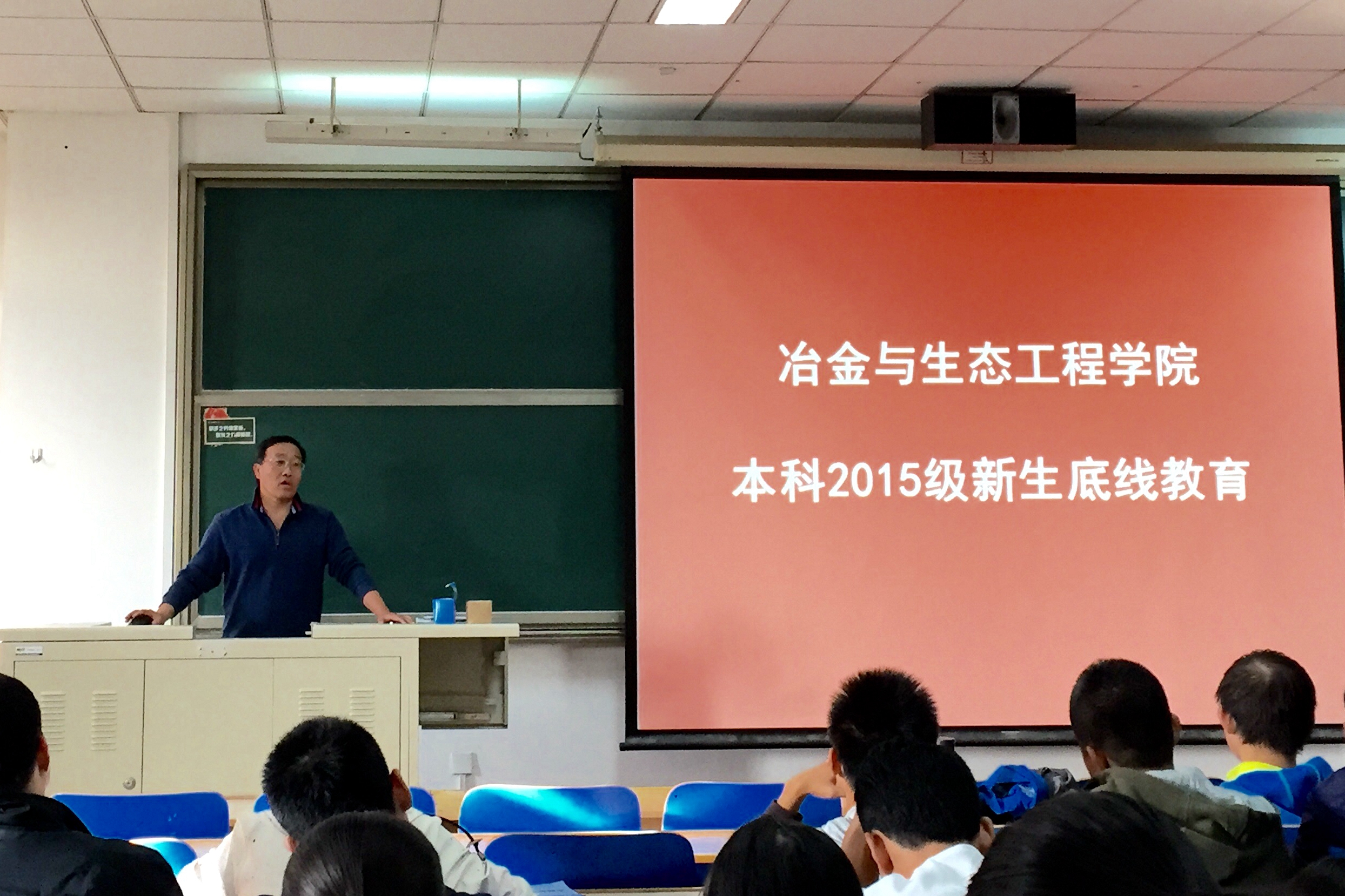 本科2015级新生底线教育专题报告会在逸夫楼举行。学院党委副书记兼副院长王春义老师为学院本科2015级全体新生作专题报告。