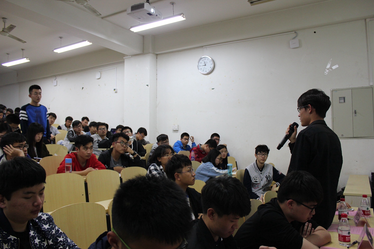 在接下来的答疑环节中,同学们向几位优秀的实践团队队长提出了一些问题,张健博老师对社会实践的加权分做了回答,马双飞对冶金在钢厂的就业情况作了简单的介绍,邓雨平对社会实践的硬性要求做了简洁的说明,几位队长根据自己实践的情况对同学们的问题做了回答。