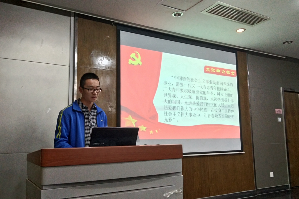10月12日晚9点30分,age动漫 本科14级党支部“学习长征精神”组织生活会在冶金楼青钢报告厅顺利举办。冶金1401班赵建行、李琳琳同学,冶金1402班范兴乐、赵秀云同学,冶金1405班梁俊威同学围绕“长征精神”进行了主题分享。刘琦同学担任主持。