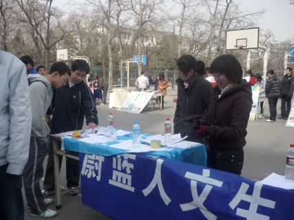 3月13日北科大篮球场“百团大战”,蔚蓝人文生态学社(Social Ecological Association--简称SEA)招新活动如期举行。活动受到了贝壳学子的积极响应和热烈欢迎,本日下午活动圆满结束。