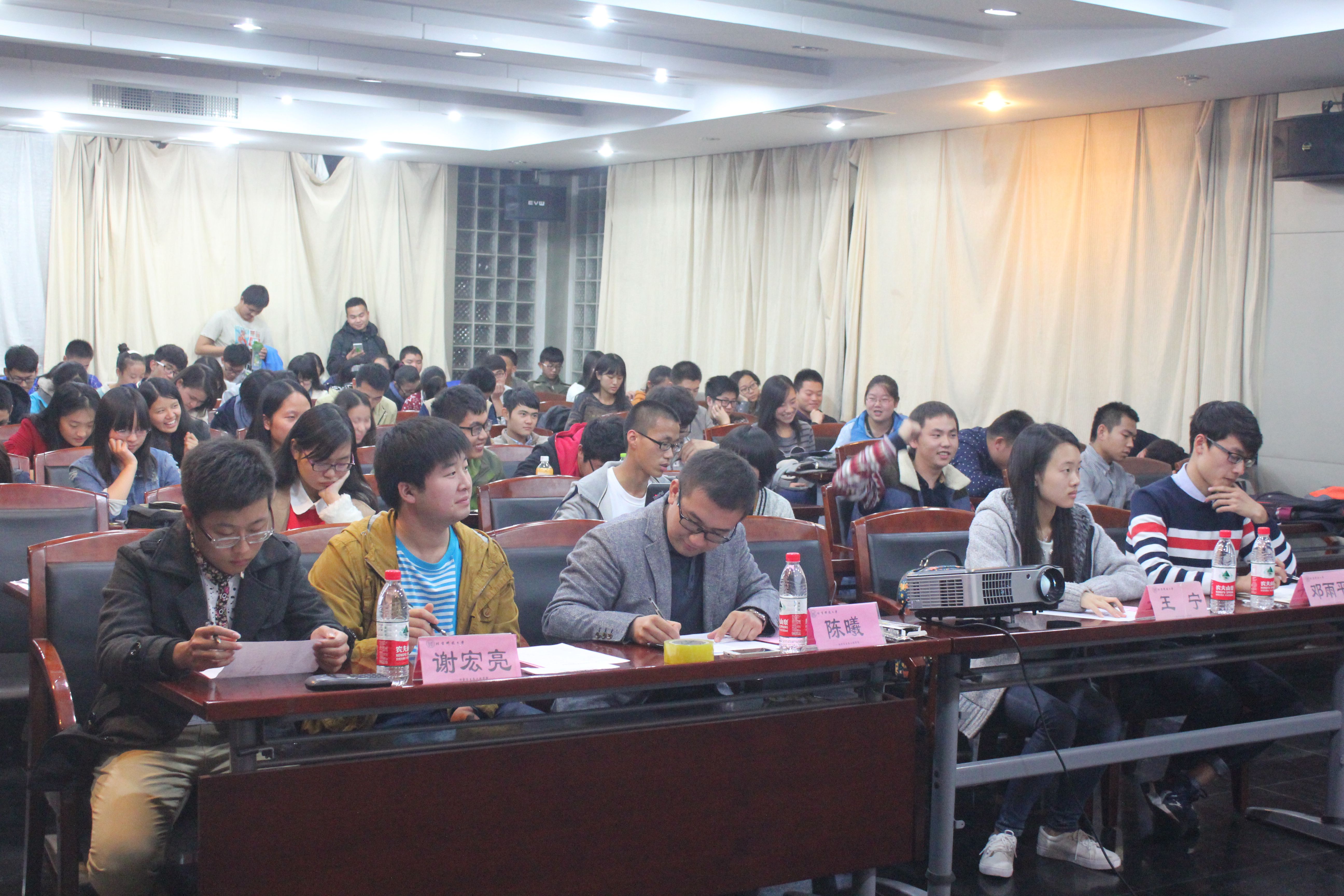 辅导员陈曦老师、学校求是学会会长王宁同学、学院学生会主席谢宏亮同学、往届校园演讲大赛十佳选手邓雨平同学担任评委。本次校园演讲大赛以“颂中国精神,绘明日东方”为主题。近百名学生现场聆听了age动漫