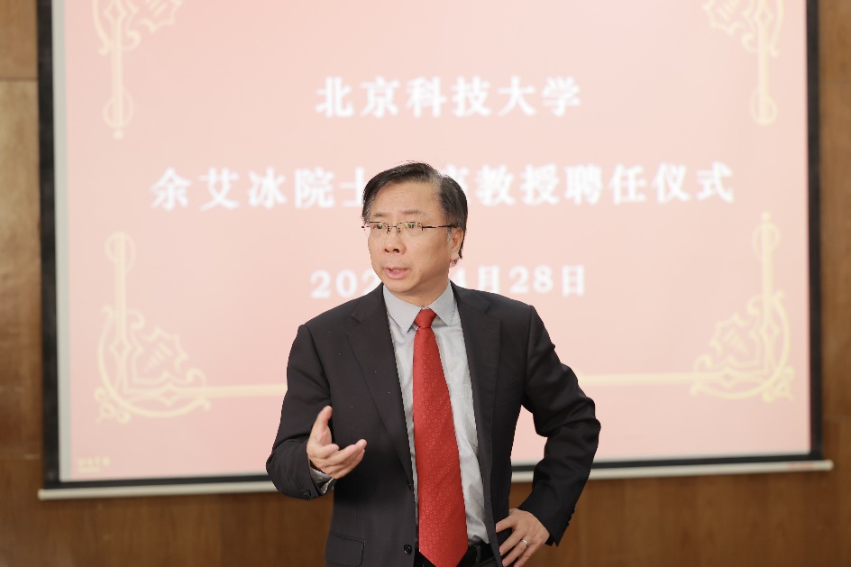 报告开始前,杨仁树校长首先为余艾冰院士颁发了age动漫 客座教授聘书。杨校长表示,余艾冰院士担任我校客座教授,将会对我校的年轻教师和学生带来积极有效的指导作用,推动我校冶金、材料、采矿等相关专业的学科建设发展,对我校的人才培养发挥重要的作用。张建良院长对余艾冰院士的到来表示热烈的欢迎和真挚的感谢,希望能借此机会加强学院与余艾冰院士团队的学术交流与合作。