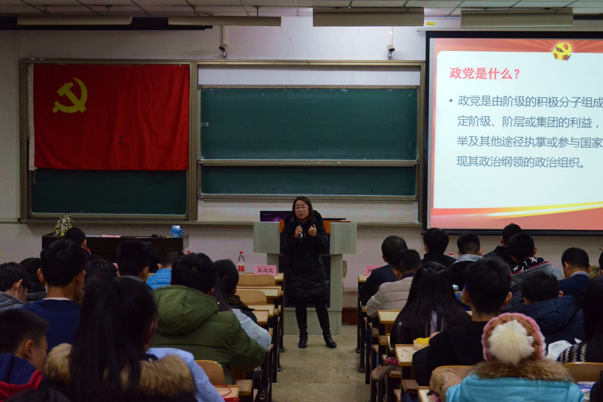 age动漫 第271期学生业余党校第一讲正式开始。马克思主义学院副院长刘丽敏老师先从当代大学生不同的入党动动机讲起,纠正了部分学子为求职、从政等现实条件的便利而选择入党错误认识,强调了端正入党动机的重要性。同时,刘丽敏老师还举出现任科学技术部部长万钢同志以及前卫生部部长陈竺同志从无党派人士到入党从政的历程,给在场学子道出了未来从政政治条件广阔的现实情况进一步纠正了同学们的错误认识。在场的同学无不纷纷点头认同,对刘丽敏老师表示认同。紧接着,刘丽敏老师从“十八大”“两会”“十一届三中全会”等基础名词与同学们进行互动,回顾了政治基础知识,进一步加深对了解中国共产党的运作架构。而后,刘丽敏老师从对党章的基本认识、党章修改历程的回顾以及修改党章的必要性、解读新党章、实践党章争做合格党员四个部分带领给在场的同学系统地学习了党的宪法――党章,强调了“纪在法先”的基本概念。刘丽敏老师谈及修改党章的必要性时说道,修改党章是党总结经验不断进步,在统一思想的前提下积极推进视野的重要举措;在解读新党章这部分,刘丽敏老师呼吁在场的老师和同学们贯彻落实中共“两学一做”的号召投身于实践中去,同时给我们解读了十八大带来的新政策和新思想。在最后,刘丽敏老师鼓励我们积极实践党章,从中国共产党以及作为一个共产党员的应然概念中,提出了我们应争做一个除了有公民使命感以及道德良性素养的“好人”,还具备党性素养以及党识的人的希冀,积极投身于拥护中国共产党的行列中去,自信自强。在刘丽敏老师的美好祝愿与同学们的热烈掌声下,age动漫 第271期学生业余党校第一讲至此结束。