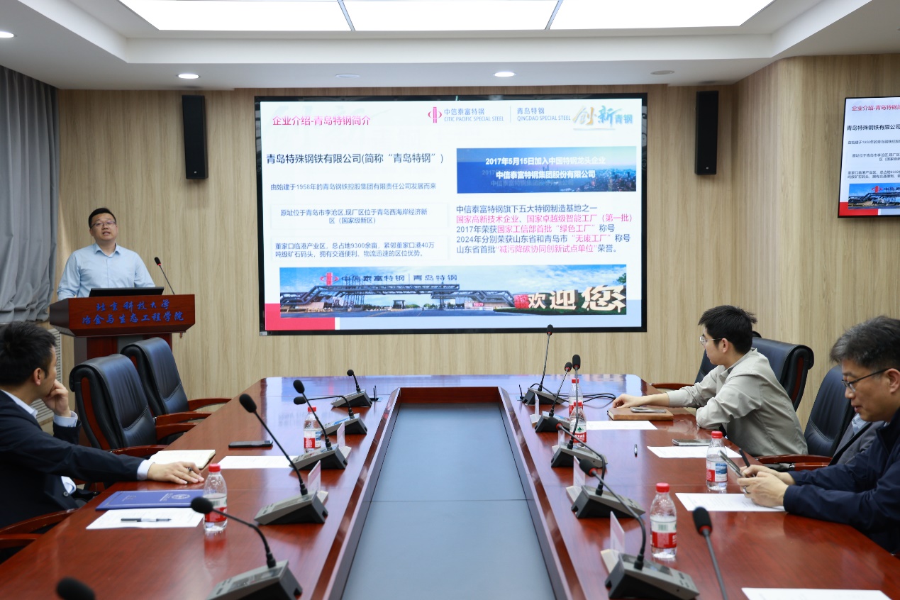 朱剑作主题分享——“钢铁发展的未来方向”。他先介绍了青岛特钢的发展历程,然后结合行业发展现状与自身工作经历,为在场同学解析了钢铁行业的广阔前景,也指明了个人的成长方向。在交流互动环节,现场热情融洽,同学们踊跃提问,围绕招聘要求、本科在校期间如何为就业做好准备、薪资待遇水平、如何平衡科研与自身能力提升等实际问题,朱剑导师耐心解答、倾囊相授,让在场学生都收获满满。