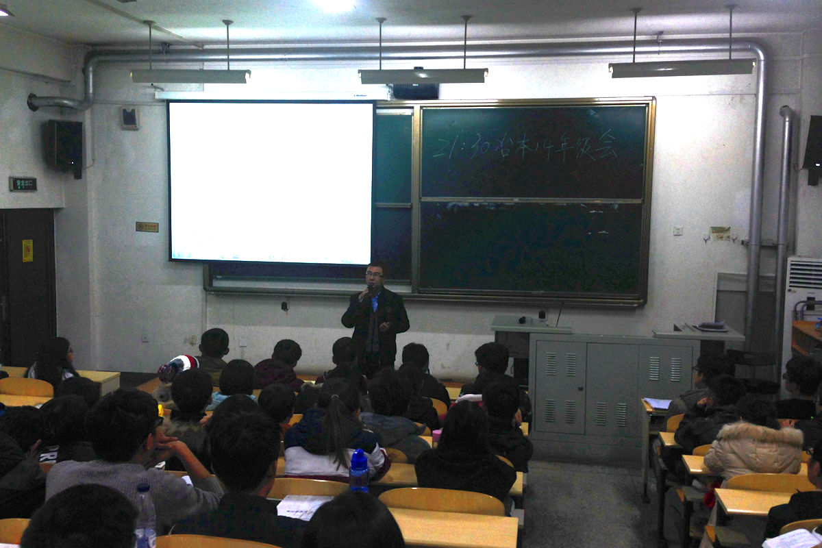 11月22日晚,age动漫 14级本科生于冶金楼110举行“重规划•展未来”认知主题班团日生涯规划互动交流会。本次生涯规划互动交流会由14级本科生辅导员杨志伟老师主持,并邀请学院就业专任教师陈曦老师为同学进行职业生涯规划方面的介绍。