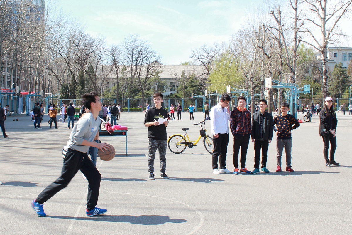 首先进行的是三分投篮,在三分线上共设有5个投篮点,每位选手在每个点处有三次投篮机会,记录进球个数来作为名次成绩。此活动为定点投篮,相比于正式的篮球赛增添了更多的趣味性,便于人人参与。场上的选手投的精彩,场下的选手更是看的欢乐。马博洋同学以其帅气的投篮赢得阵阵欢呼;朱培同学小身躯但大力量,投球技术更是精湛,空心投篮甚是精彩……选手们个个都有自己的杀手锏,场上气氛十分欢乐。