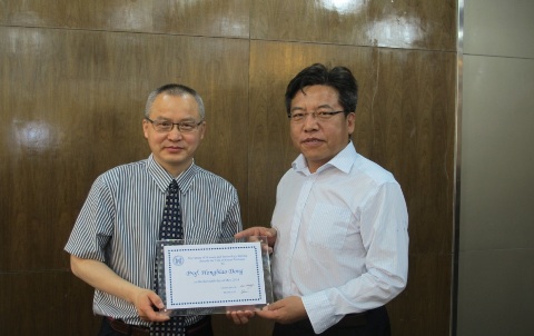 客座教授聘书,周国治院士向董洪标教授颁发了冶金大讲堂第十七讲主讲嘉宾证书。