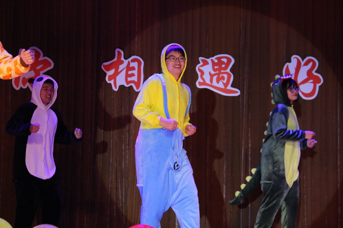 节目的尾声,是由冶本16级辅导员与年级组成员倾情奉献的《九朵冶花》,节目以一首《甜甜的》开场,身着各异卡通服装的年级组成员和辅导员、导助一出场就引起了现场同学的阵阵欢呼,一个团结融洽,积极向上、活力四射的年级组赫然眼前。紧接着,九个人变换队形,以别具魔性的舞姿为大家带来不一样的《咋了爸爸》,再一次点燃了大家的热情。一阵热舞后,化身小黄人的导员敞开心扉,表达了自己与所有16级同学相遇的庆幸与感激,并且给同学们给予了的期许与期盼,希望他们能有一个美好的大学生活。