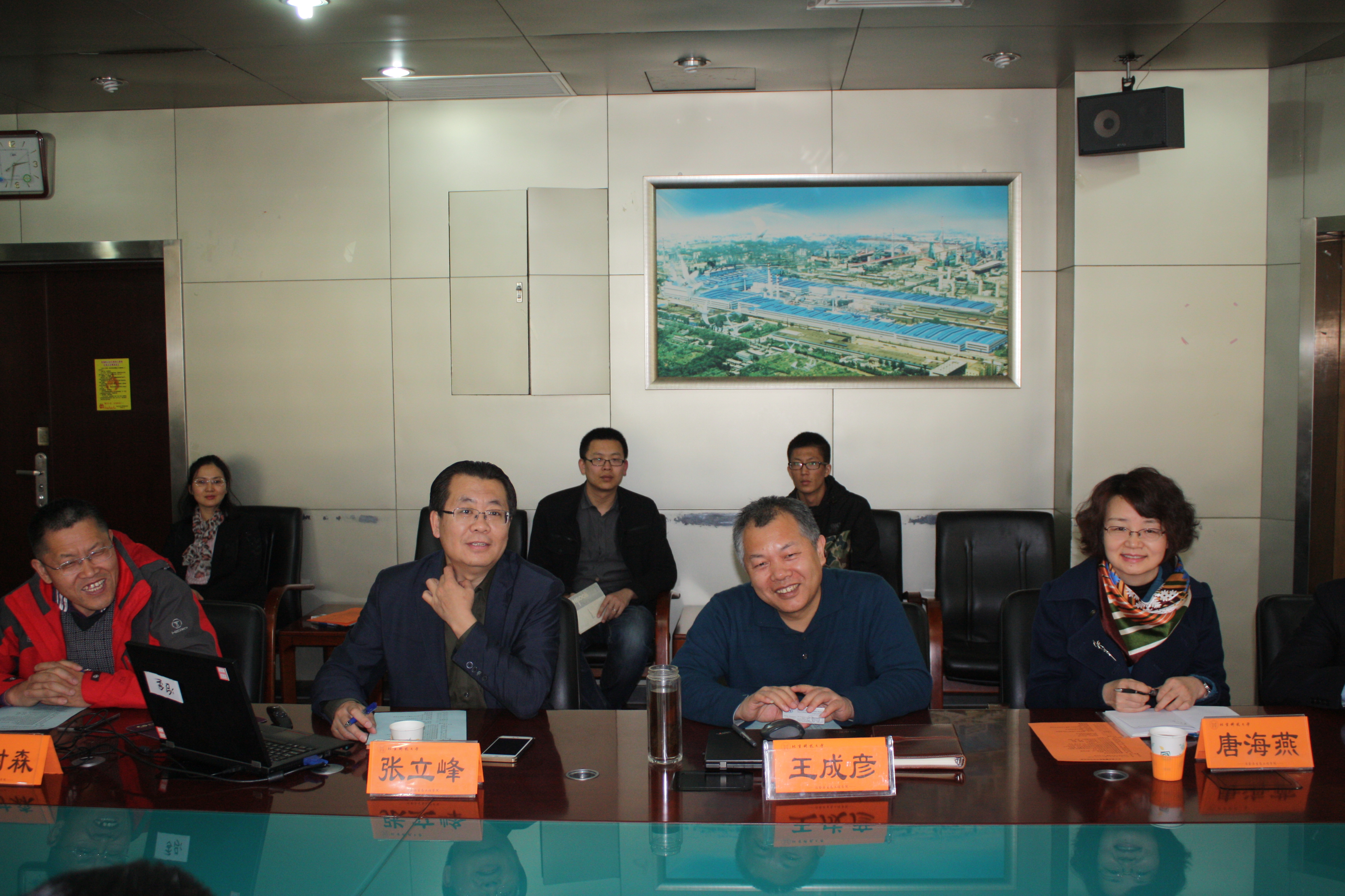 王成彦副院长、冶金系系主任张家泉教授、冶金系副主任唐海燕副教授、程树森教授、王广伟博士、寇明银博士等,会议由张立峰院长主持。