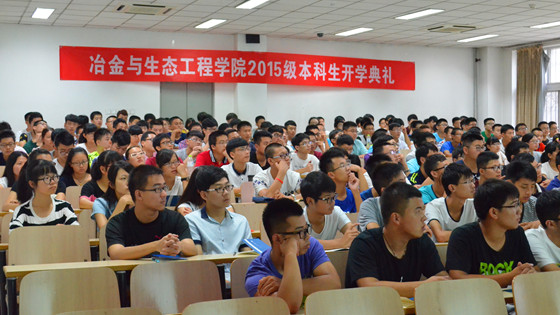 院长张立峰,党委书记宋波,副院长张建良、陈骏、李宏煦,有色金属系系主任薛济来,生态工程系系主任李素琴以及学院全体2015级本科新生参加此次典礼。典礼由学院党委副书记王春义主持。