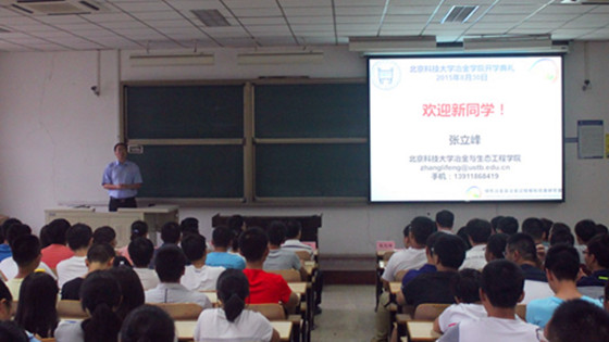 、组织架构和师资力量,并通过比较近十年来在《MMTB》、《Steel Research》等知名期刊上文章的发表数量向同学们展示了我校在钢铁研究领域取得的优异成绩。最后,张立峰与同学们分享了自己的感受:第一,选择自己的人生从大学开始;第二,谋事在人,成事在天;第三,做学问要在不疑处有疑,做人要在有疑处不疑;第四,学生当以学习为主,其余为辅。院长的讲话给同学们留下了深刻的印象,现场掌声阵阵、欢呼雷动。