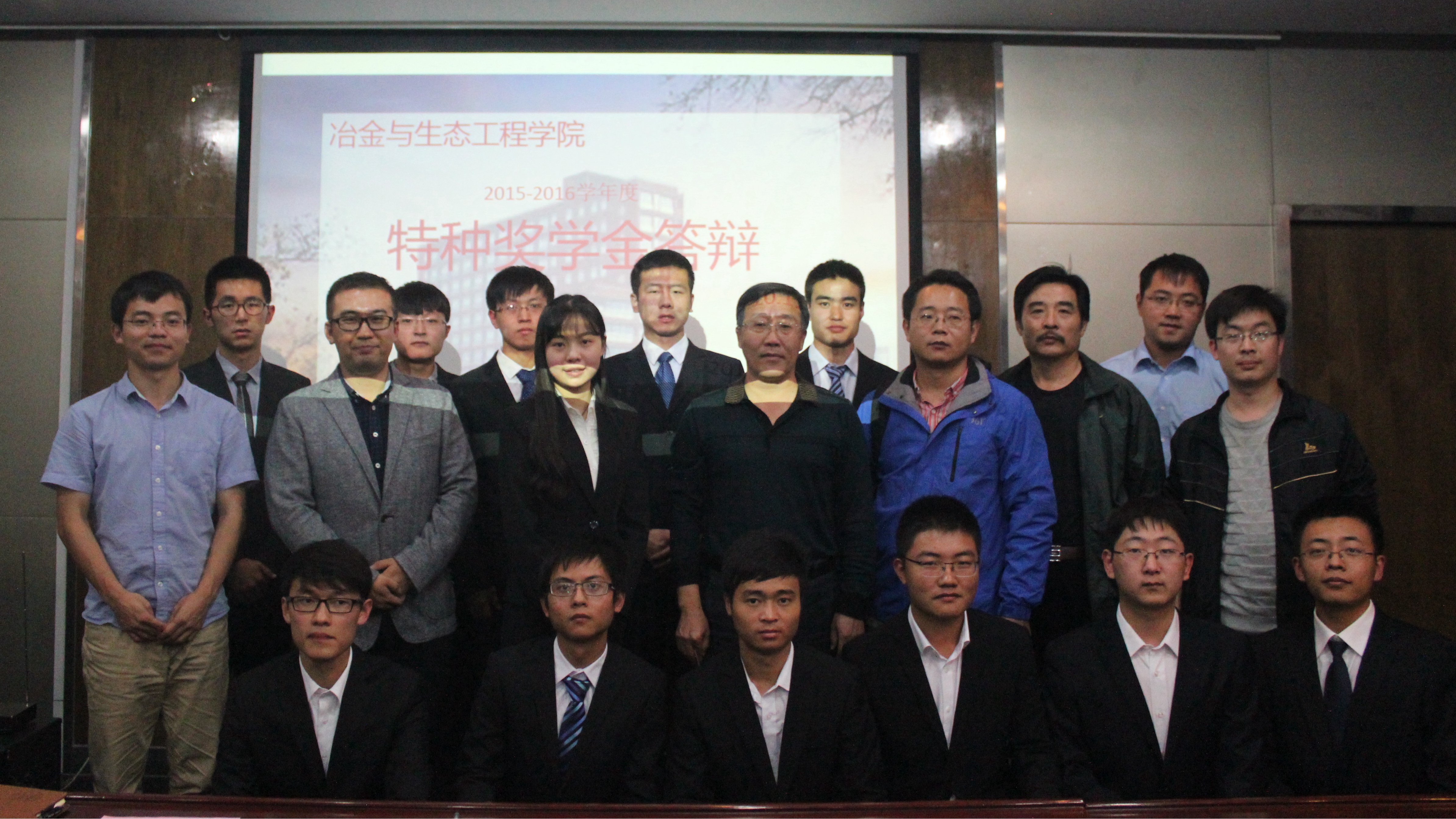 2014-2015学年本科生特种奖学金答辩会在冶金生态楼青钢报告厅隆重举行。来自本科2012、2013和2014级的12名优秀学子进行特种奖学金答辩。学院党委副书记兼副院长王春义老师、冶金1307班班导师马瑞新老师、冶金1407班班导师曹战民老师、钢铁冶金系王广伟老师、学院团委书记杨志伟老师及本科各年级辅导员担任答辩评委。本科2015级百余名学生现场观摩了答辩。