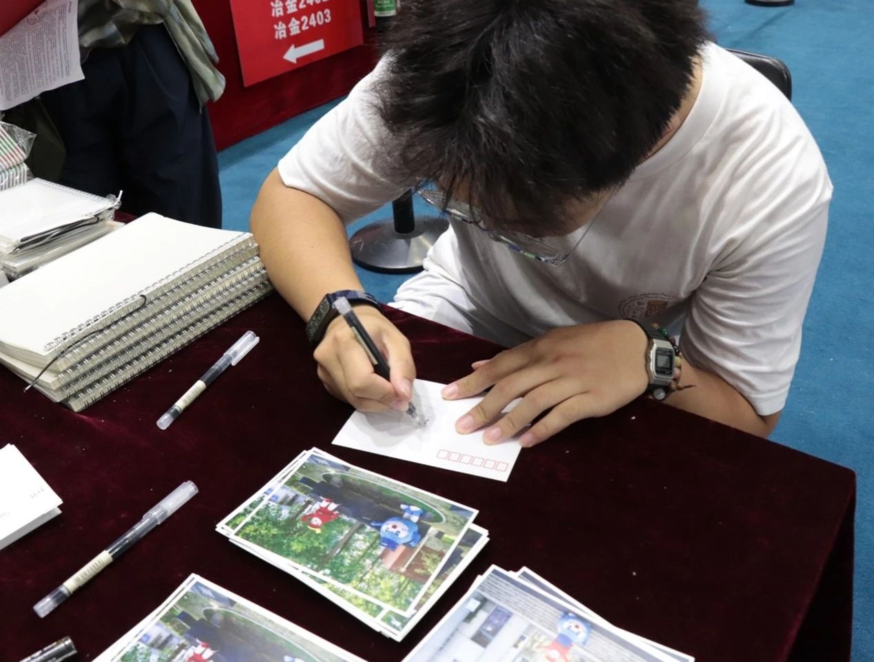 投壶游戏结束,明信片承载着期许,一句句“加油”、“前途似海,来日方长”、“纵马踏花向自由”与接下来大学四年的自己共勉。