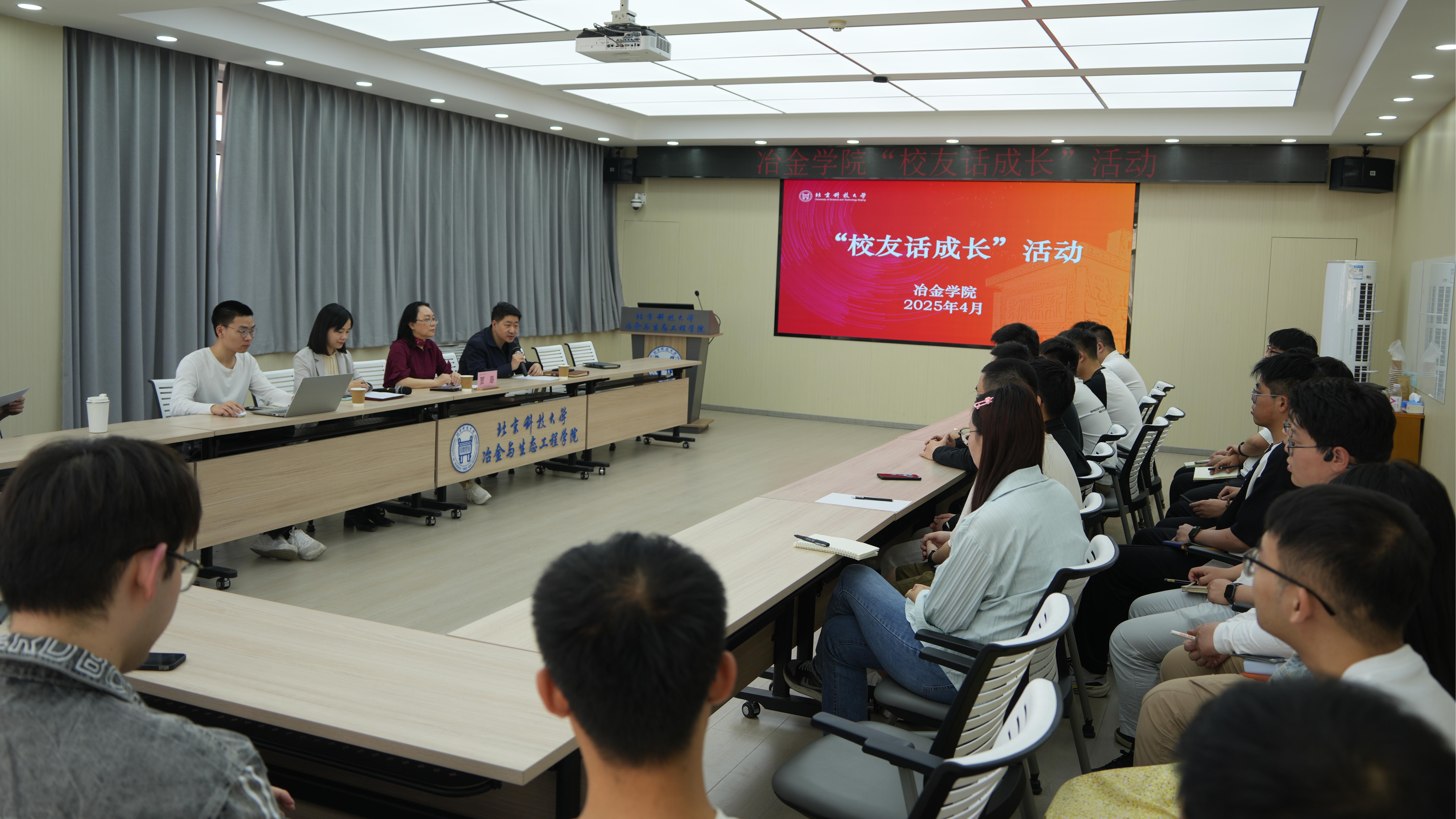 陈怡凌向贾碧校友表示了热烈欢迎和诚挚感谢,希望能以校友的成长奋斗故事,帮助冶金学子更好了解职业生涯规划选择方向,合理选择成长路径和未来职业,成为为国奉献钢筋铁骨的高素质人才。
